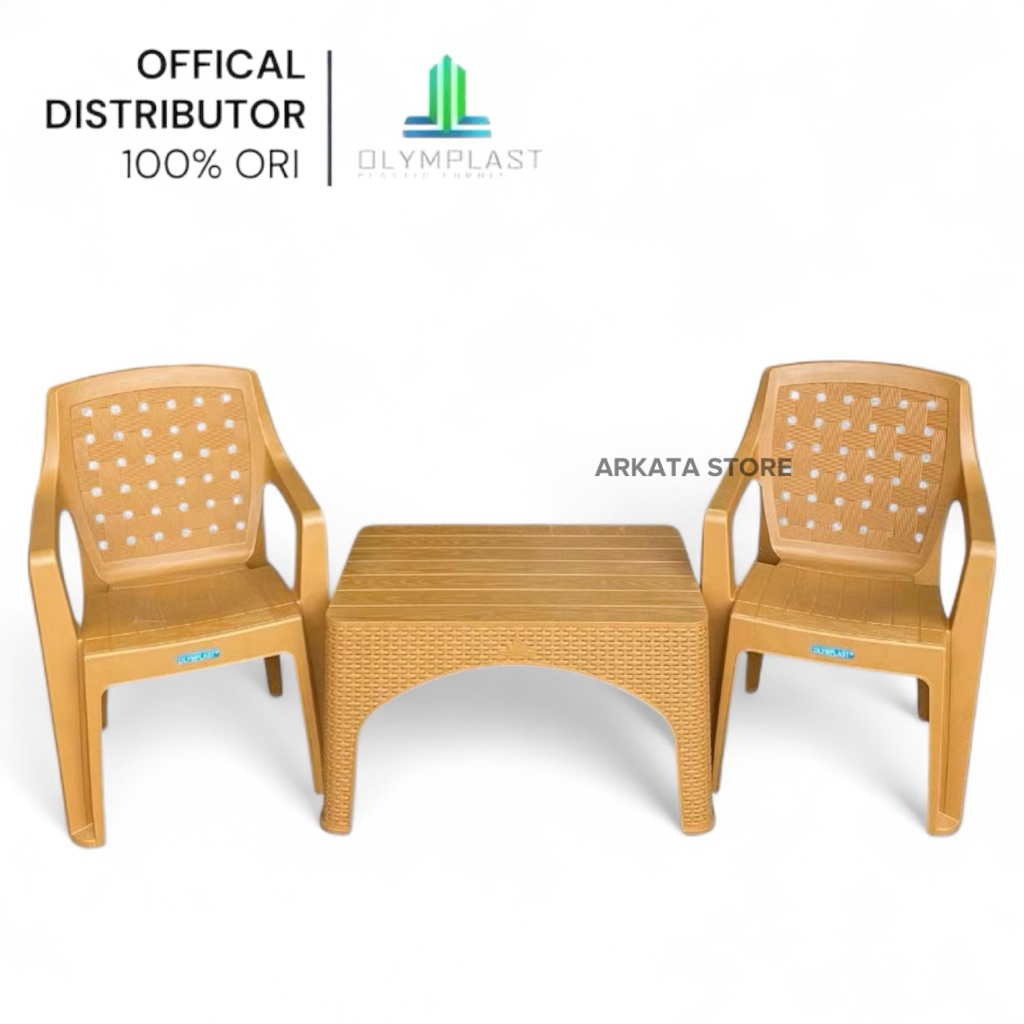 Kursi Taman Olymplast Set 2 Pcs + Meja - Anyaman Rotan Sintetis OL 507