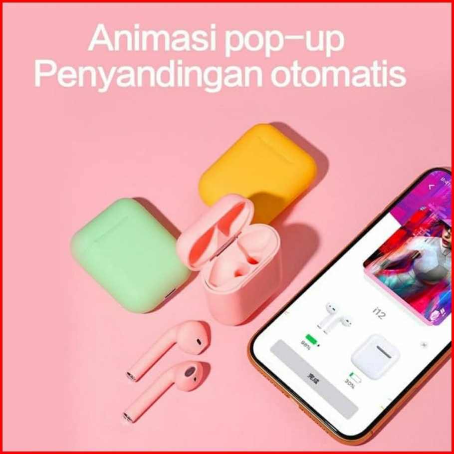 New Headset Bluetooth Tws Inpods I12 Macaron Earphone Bluetooth 5.0 Warna Macaron