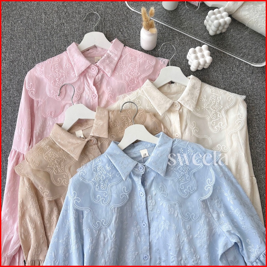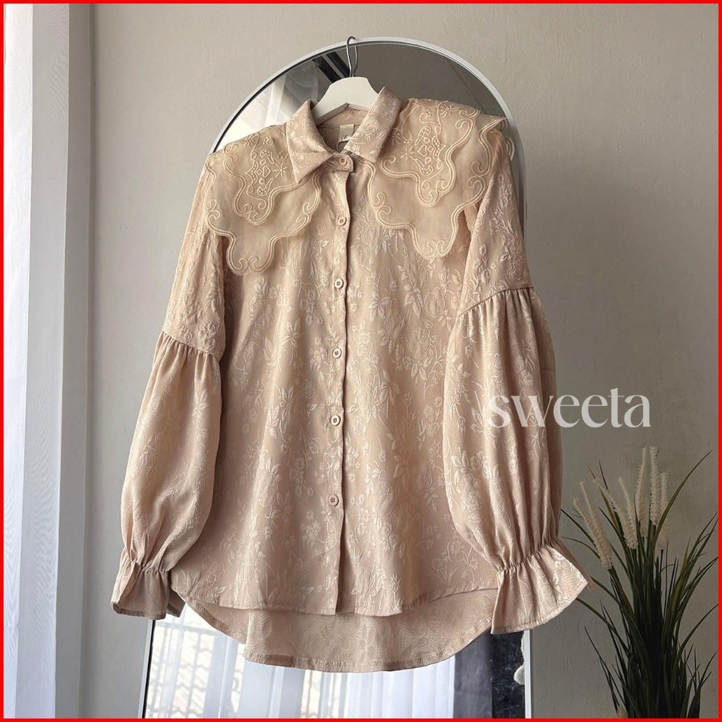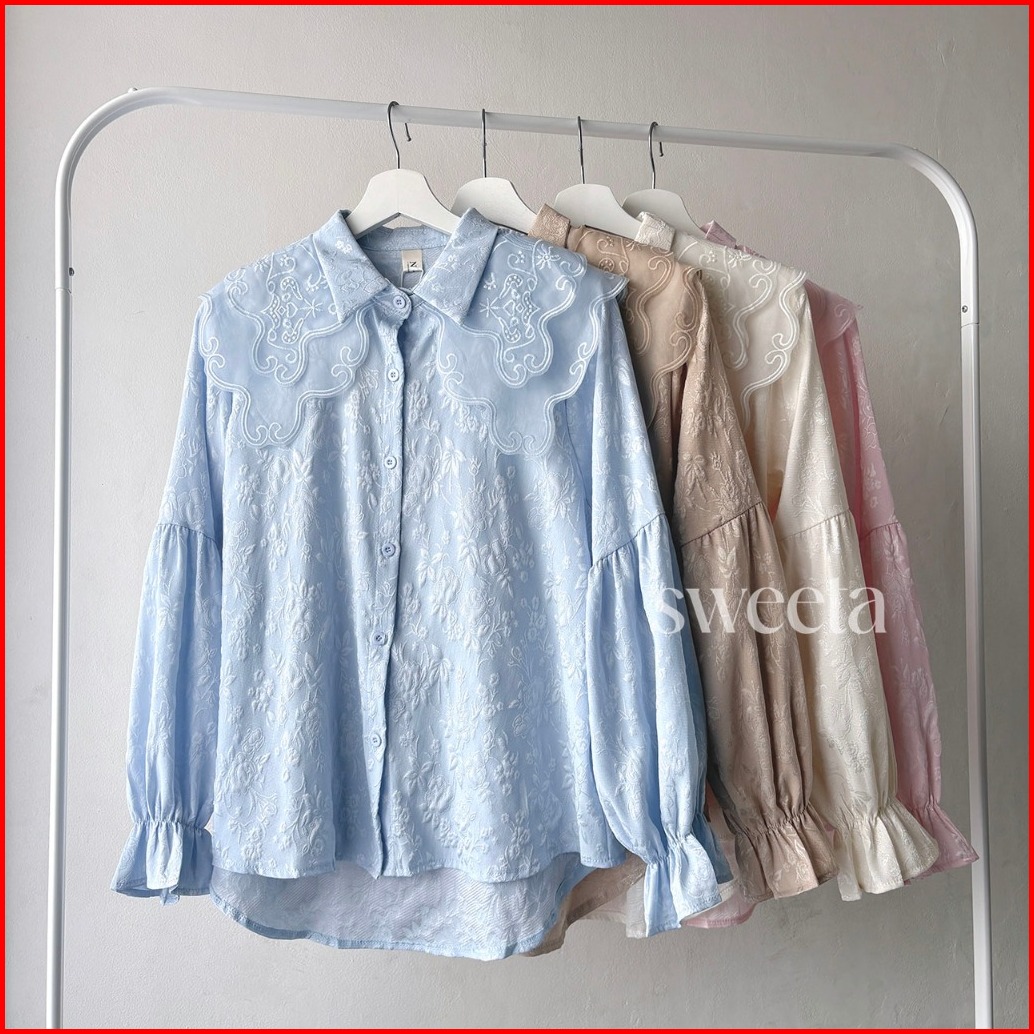 Sweeta Collar Shirt Mix Embroidery Organza Jacquard Ld 108 Cm Korea Style Atasan Wanita