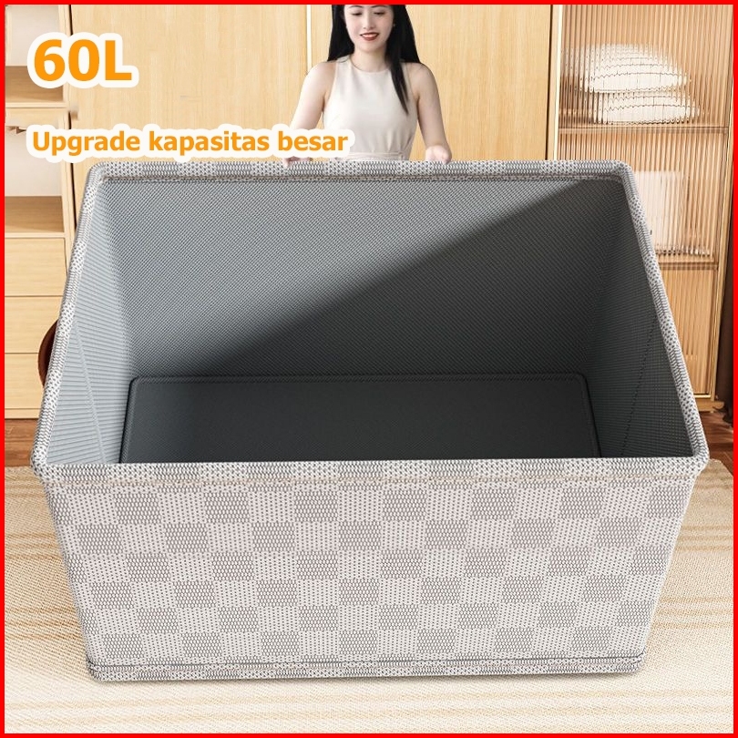 60l Kapasitas Besar Storage Box Lipat Kotak Penyimpanan Dengancover Mainan Pakaian Organizer Menebal