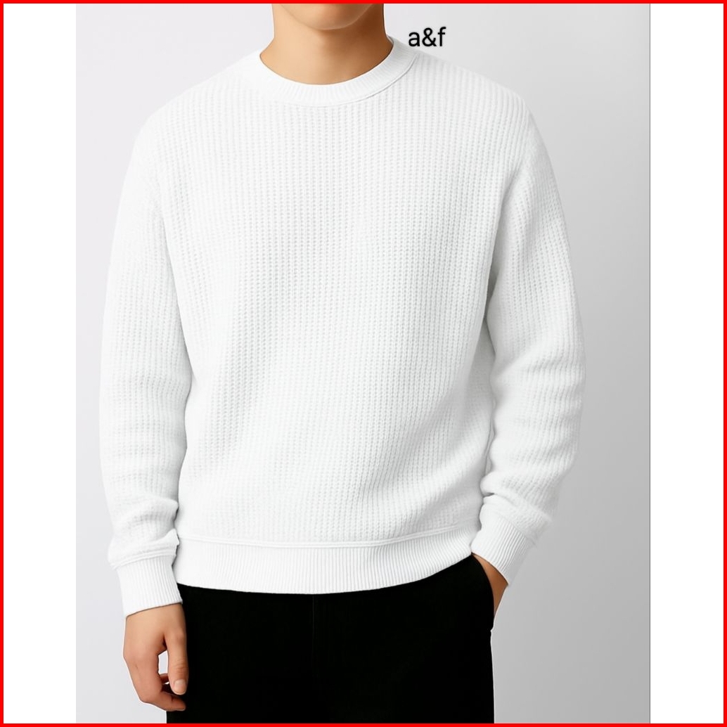 Basic Sweater Crewneck Polos Pria Wanita Bahan Wafle Premium Crewneck Wafle Kaos Pria Wanita