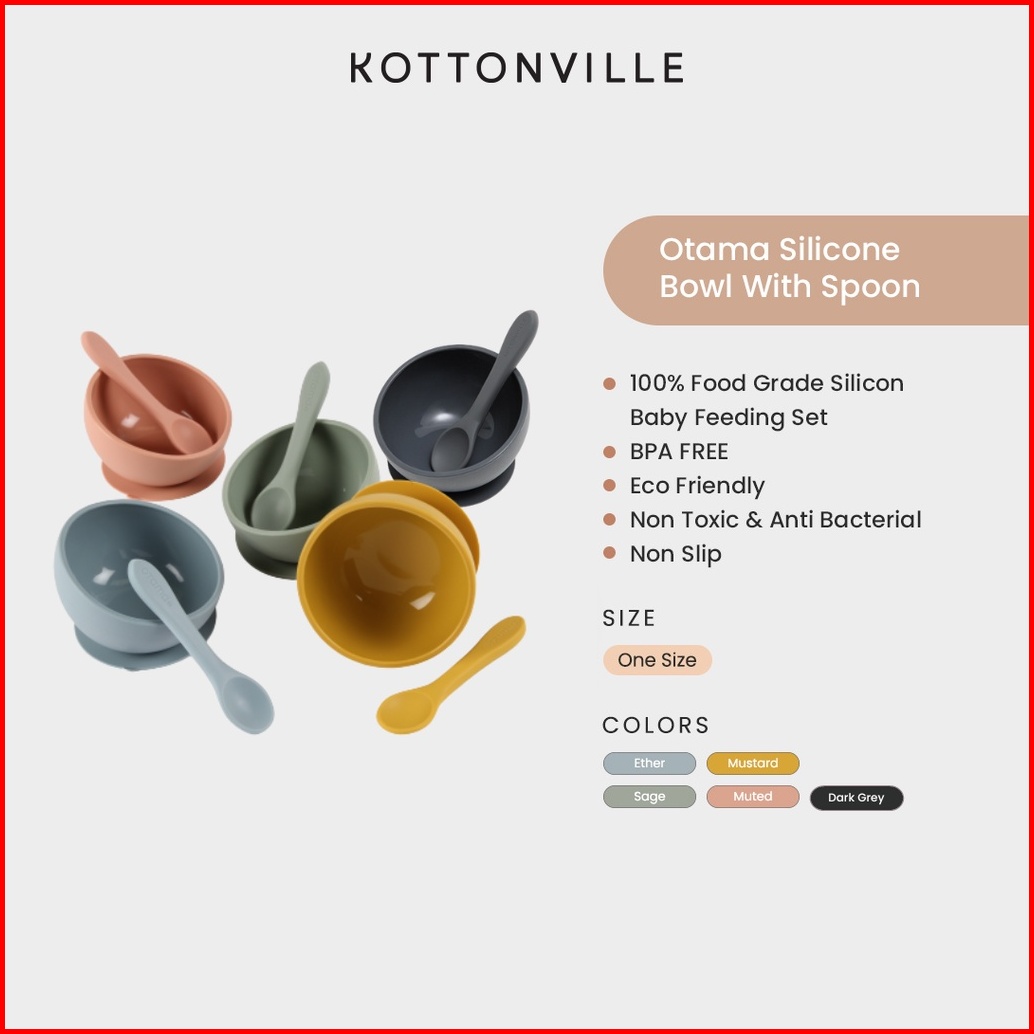 Kottonville - Set Makan Mangkok Dan Sendok Anak Bayi Otama Baby Feeding Bowl With Spoon Laki-laki Dan Packaging Plastik