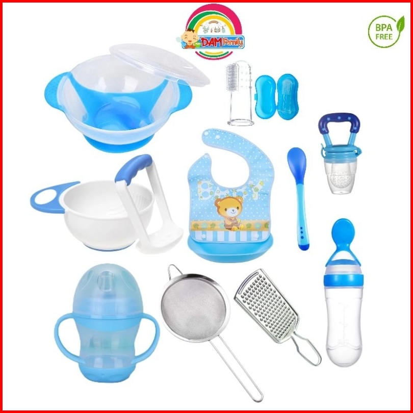Dmp-all Paket Alat Mpasi Set Alat Makan Mangkok Sendok Bayi Empeng Buah Botol Minum Celemek Makan Saringan Parutan Baby