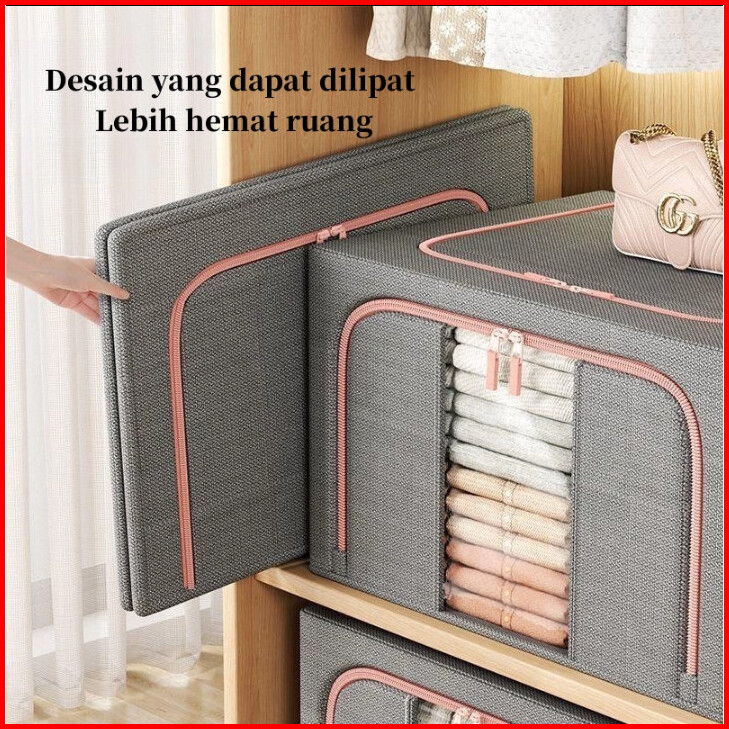 Lipat Storage Box 66l 110l Tahan Lembab Kotak Penyimpanan Serbaguna Organizer Kotak Mainan Perlengkapan Rumah Double Zip