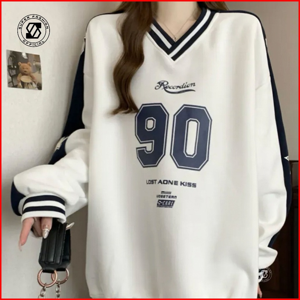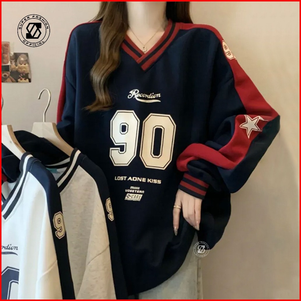 Recordion 90 American Sweater Oversize Atasan Wanita Dan Pria Jersey Sweatshirt Korean Style Remaja
