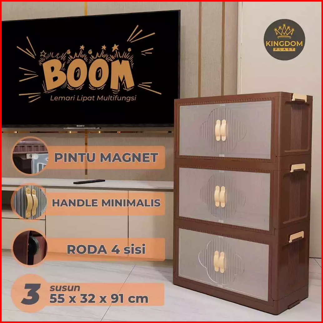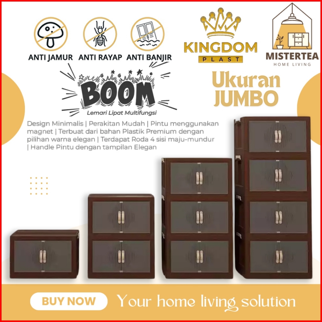 Ready Stock Kingdom Plast Container Box Lipat Rak Lemari Susun Plastik Pakaian Serbaguna Polibox Boom
