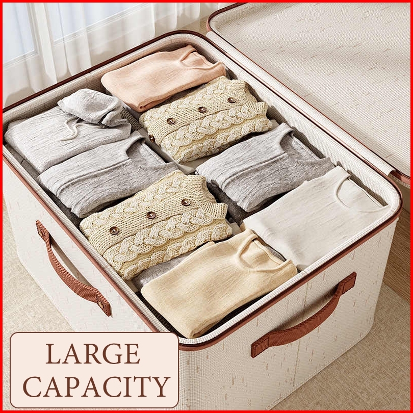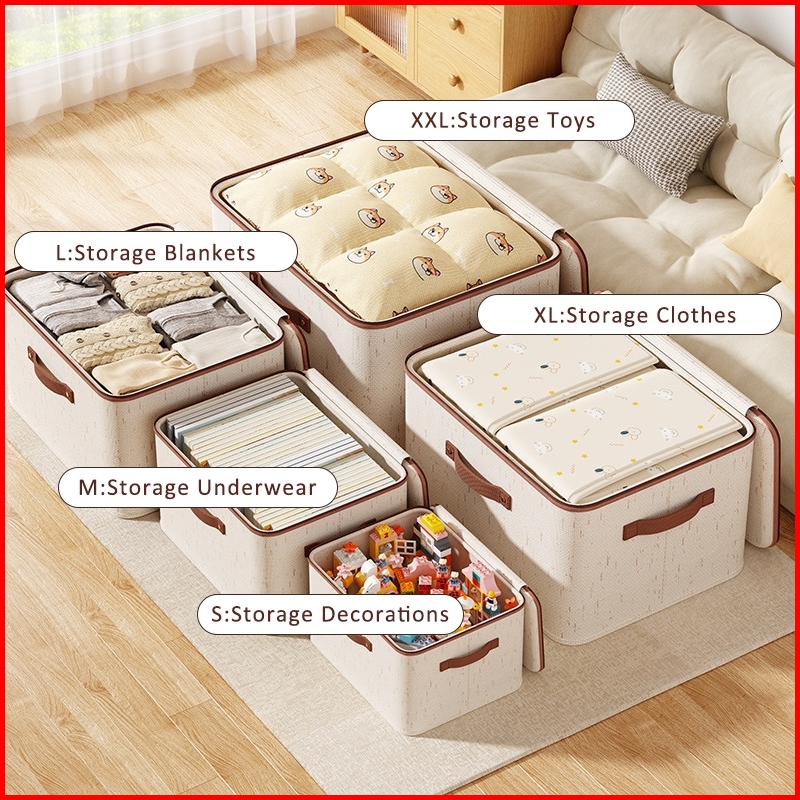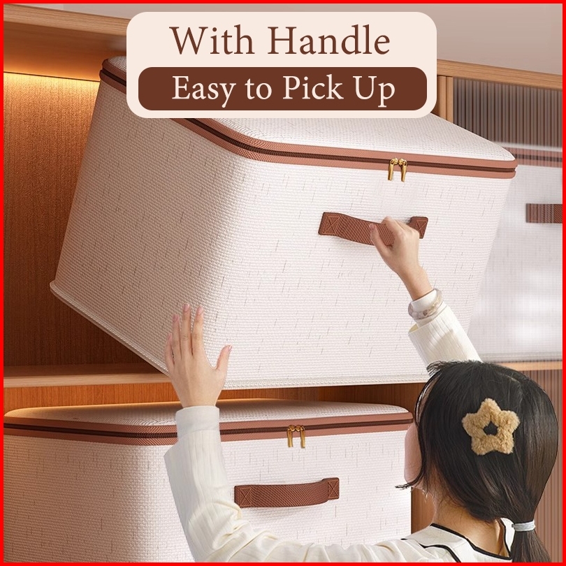 Kotak Penyimpanan Resleting Tutup Linen Katun Lipat Anti Debu Foldable Storage Box