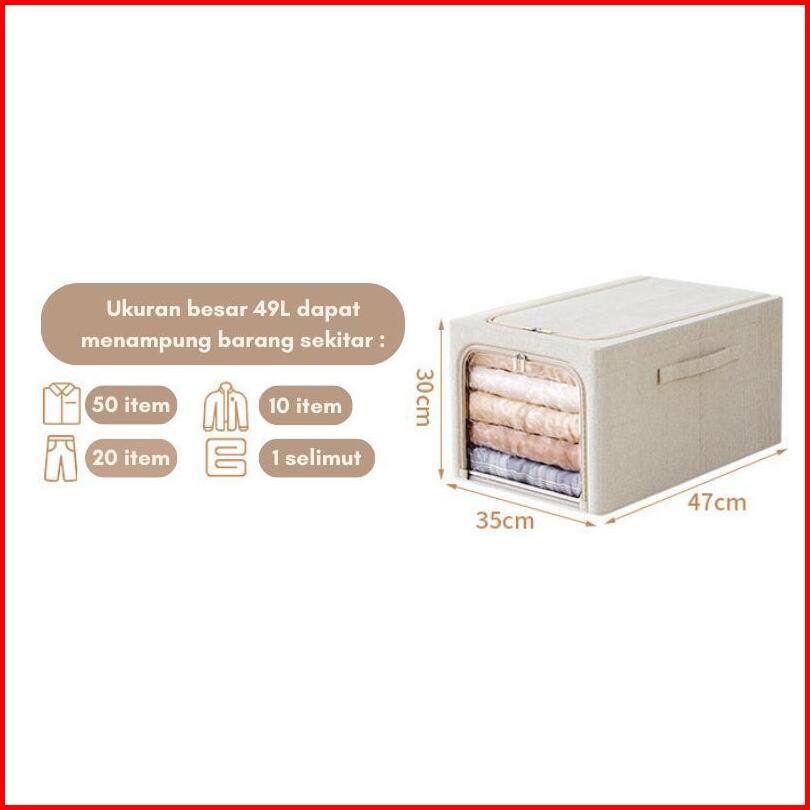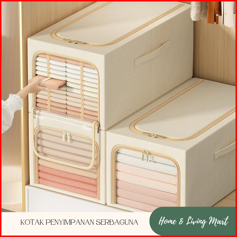 Kotak Penyimpanan Lipat Pakaian Serbaguna Mainan Box Tahan Lembab Storage Box Baju Besar Organizer Frame Baja Double Zip