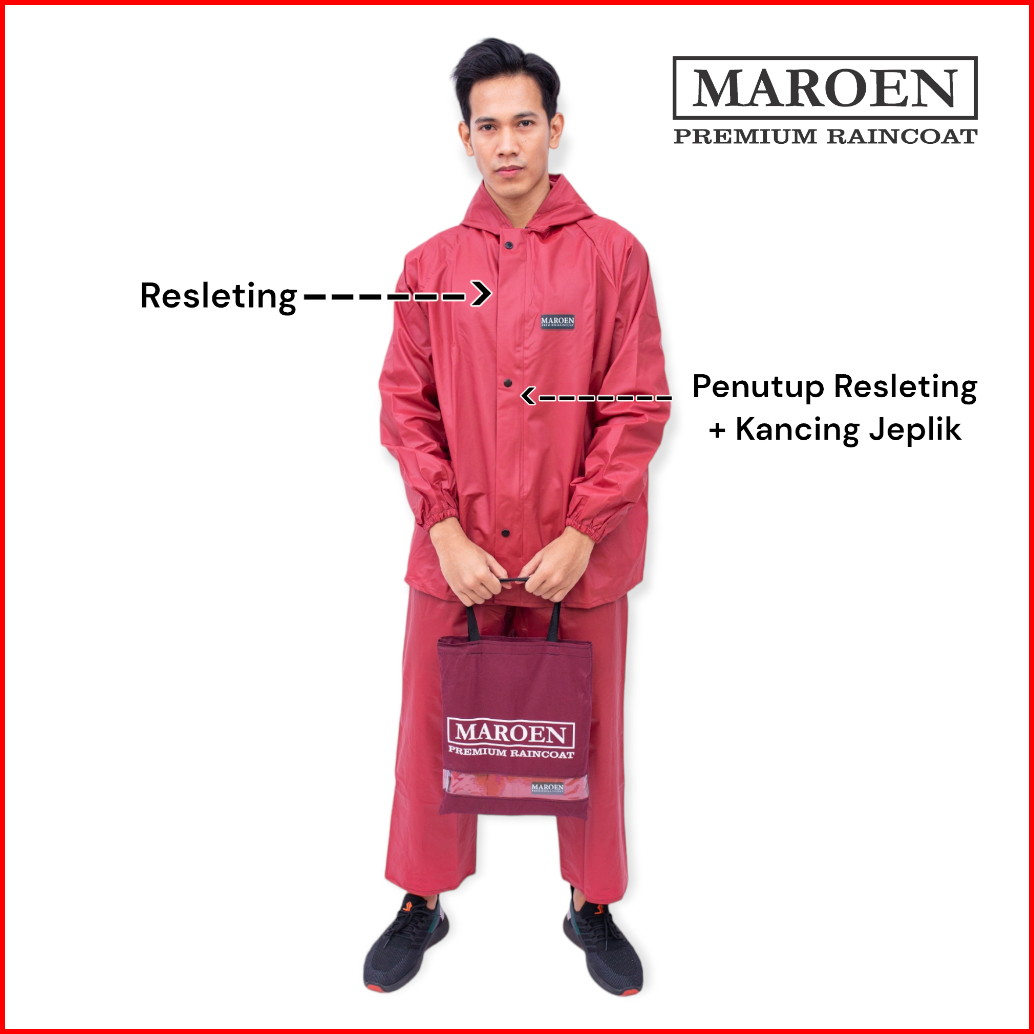 Jas Hujan Maroen Original Pria Wanita Pvc 0.25 Tebal Lentur Kuat Setelan Jaket Celana Anti Rembes Murah Grosir Raincoat