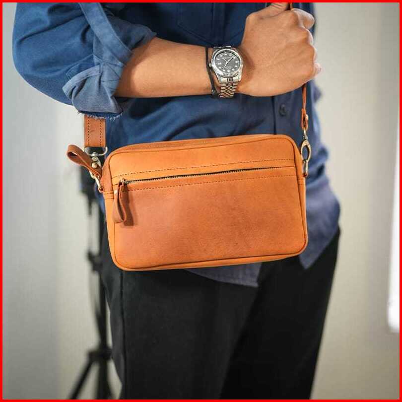 Apgred - Tas Selempang Clucth Kulit Sapi Asli - Tas Tangan Original Waterproof Sling Bag Pria Anti Air Hand Bag Pria Kul