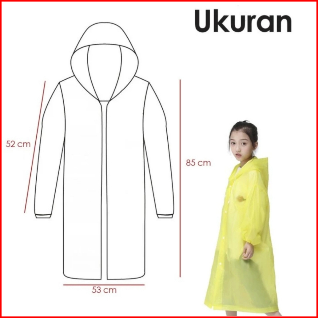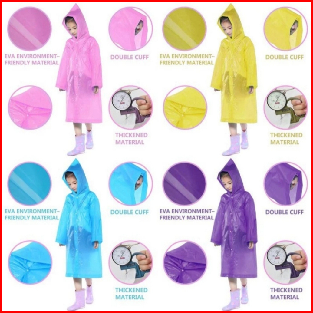 Jas Hujan Raincoat Anak 3-7 Tahun Eva Mantel Terusan Ringan Trendy Dan Nyaman Dipakai Ada Kancing