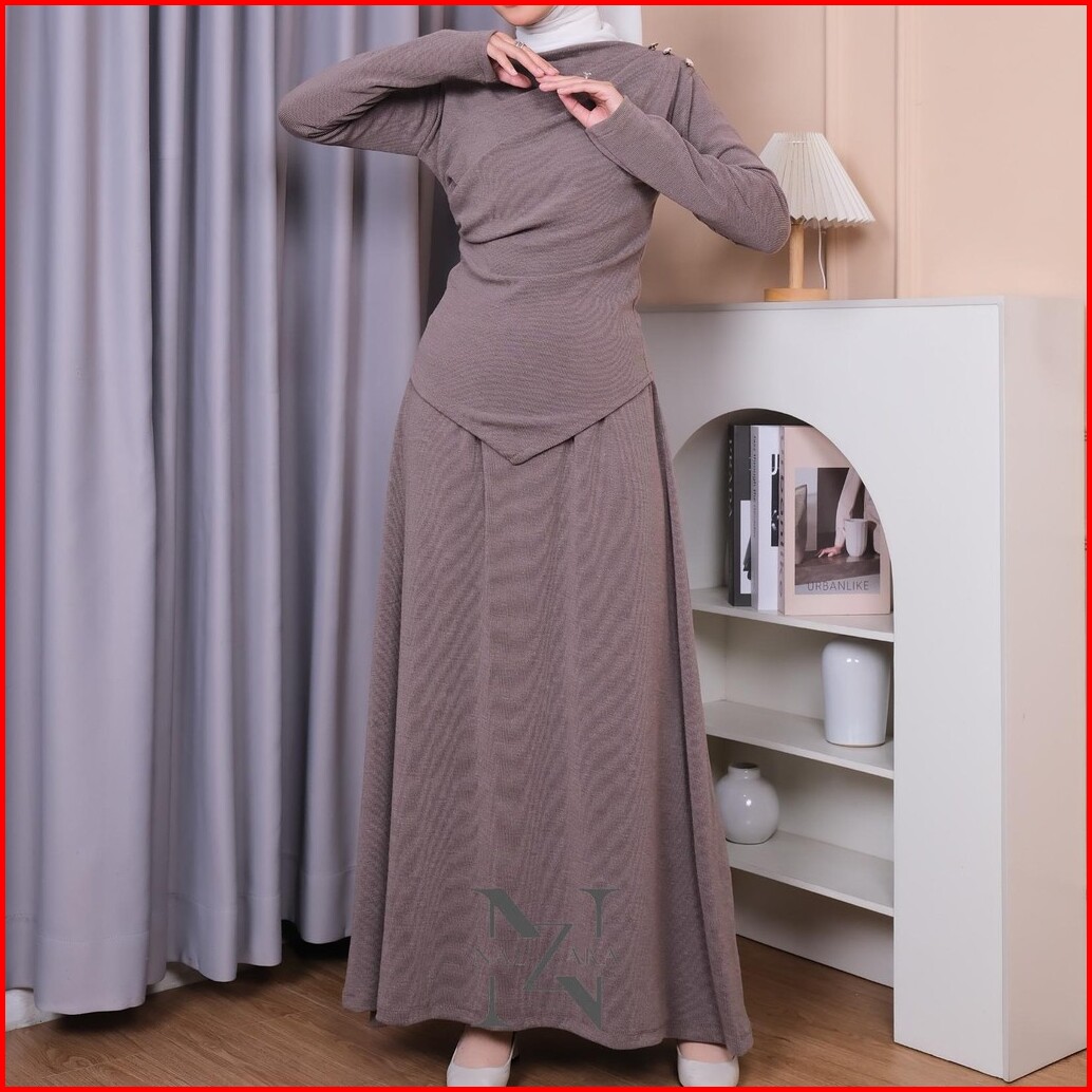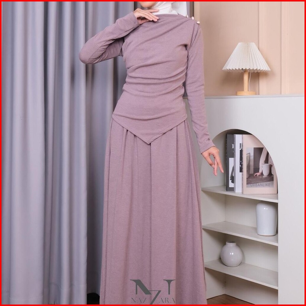 Nazzara - Ruby Oneset Rok Setelan Rok Knit Wanita Muslimah Lengan Panjang