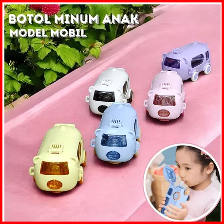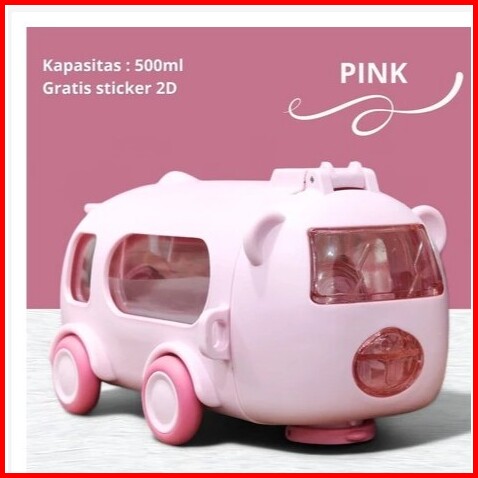 Botol Minum Anak Bentuk Mobil Bus Ada Roda Free Strap 500ml