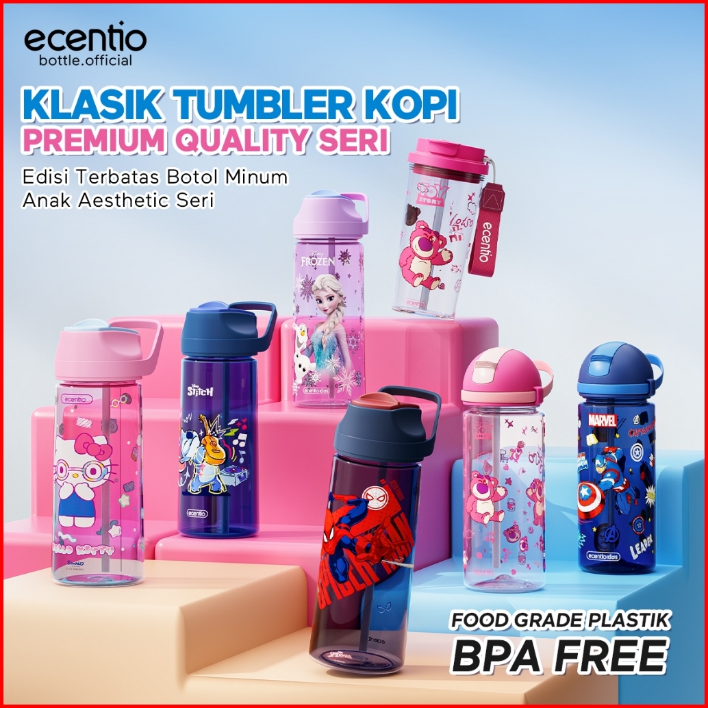 Ecentiokids X Disney Series Marvel Captain America Lotso Elsa Botol Minum Anak Lucu Sekolah Bpa Free Portable Sedotan Bo