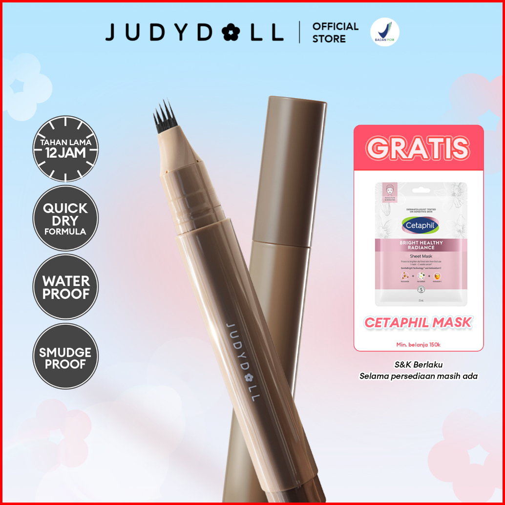 Judydoll Liquid Eyebrow Pen Pensil Alis Dengan 5 Brush Untuk Hasil Alis Natural Real Hair Strokes Tahan Lama 12 Jam Smud