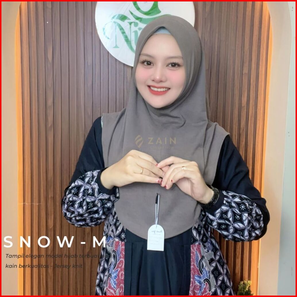 Zain - Hijab Bergo Snow M Bahan Nyaman Kerudung Non Pet Warna Hitam Putih Sage Dll