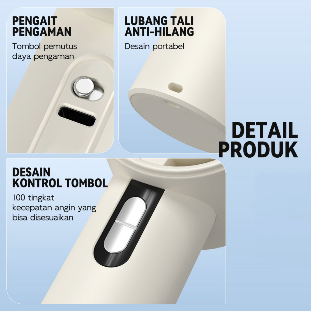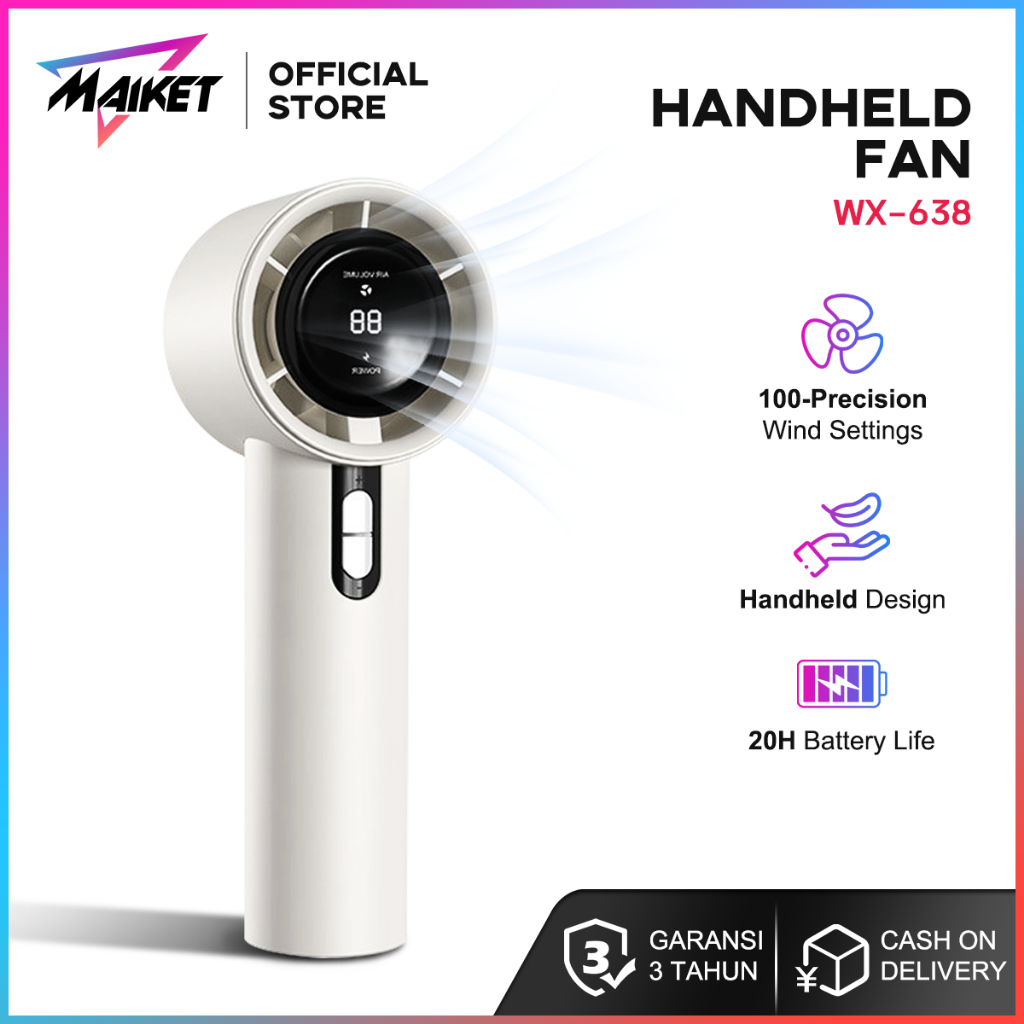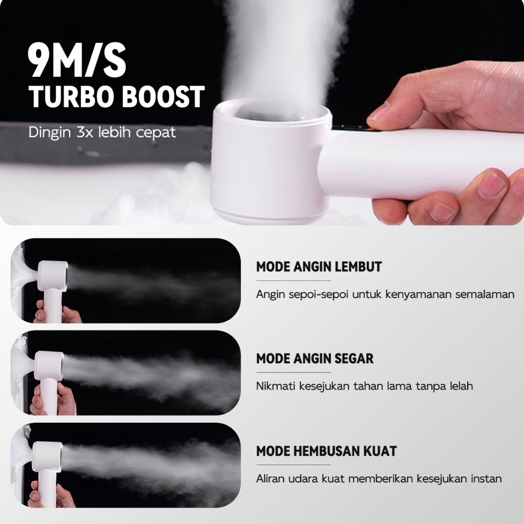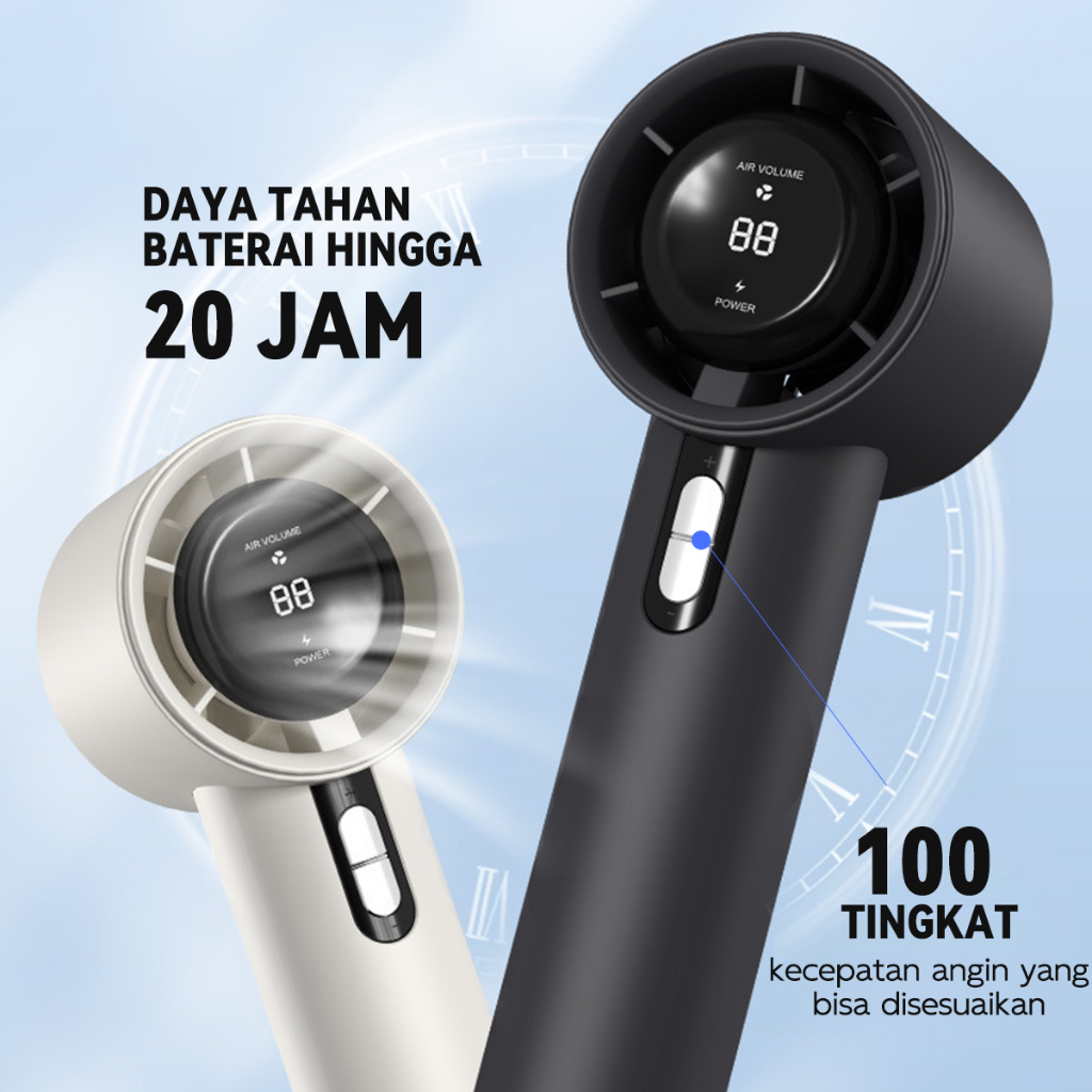 Kipas Angin Mini Portable High-Speed 3000mAh - LCD Display Daya, Ultra Ringan 180g, USB Rechargeable