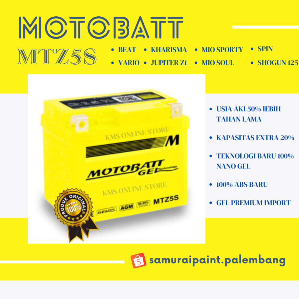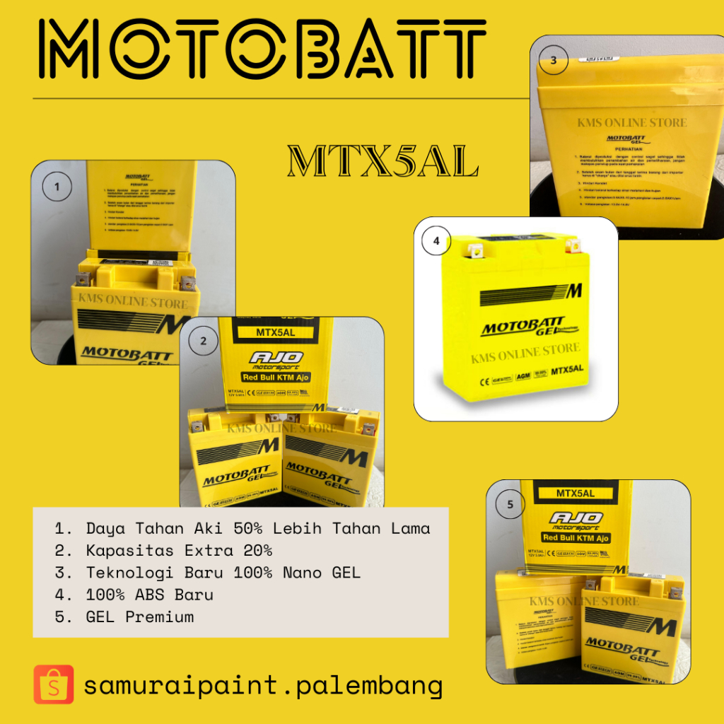 TERLARIS Aki Motor Beat, Vario, Mio Sporty, Jupiter z, Vega, Supra, Fit New Motobatt MTZ5S MTX5AL Original