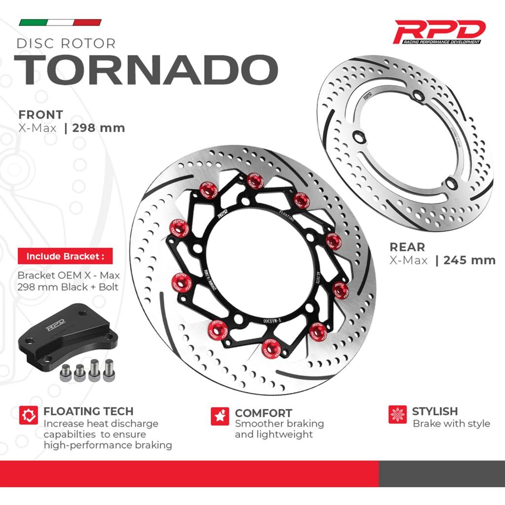 TERLARIS Piringan Cakram RPD Tornado Disc Rotor Package Motor X-MAX (Front 298MM + Rear 245MM + STD Bracket) Depan Dan B