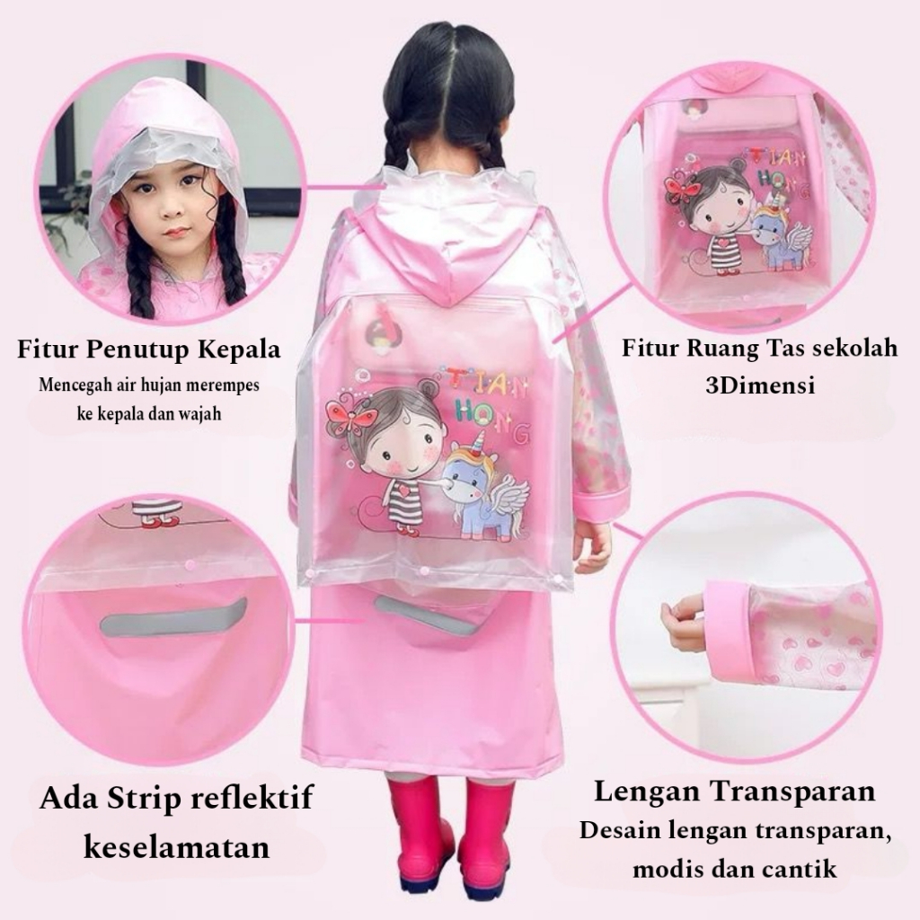 Jas Hujan Anak Dengan R Ransel Karakter Anak Raincoat Motif Kartun