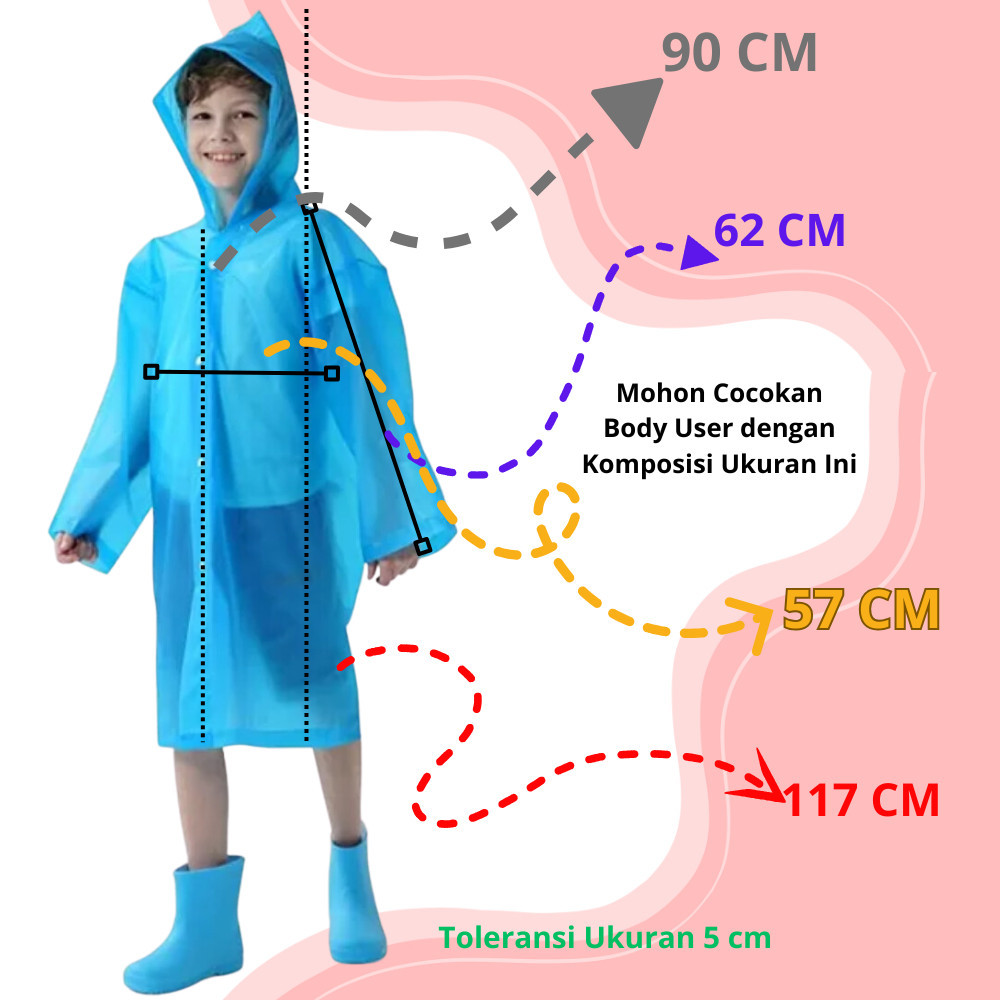 (123)Jas Hujan Eva Anak Mantel Mantol Terusan Anak Remaja TK SD 5 6 7 8 12 Tahun Polos EVA Anti Rembes