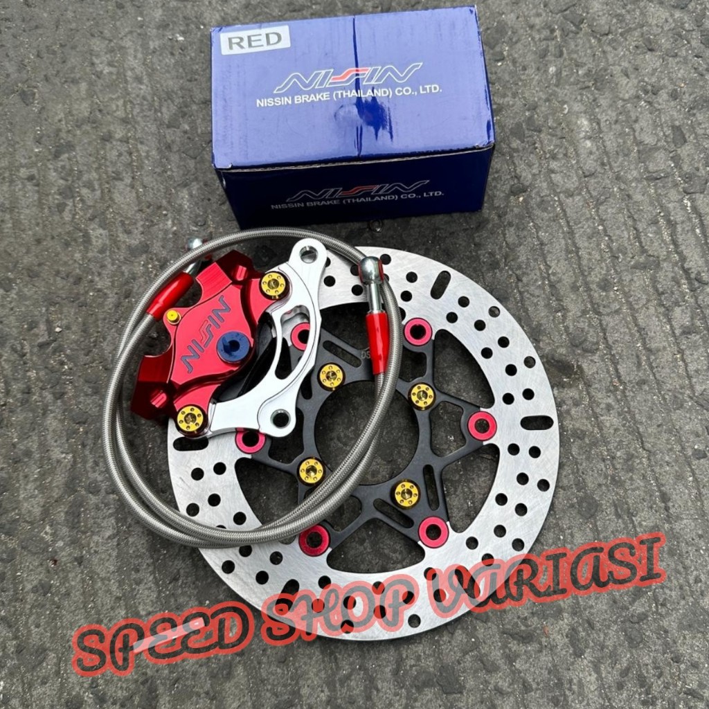 TERLARIS 1PAKET PIRINGAN DISC 220MM + KALIPER 2PISTON + SELANG REM 90CM + BAUT DISC + BREKET 220MM BEAT VARIO SCOOPY MIO