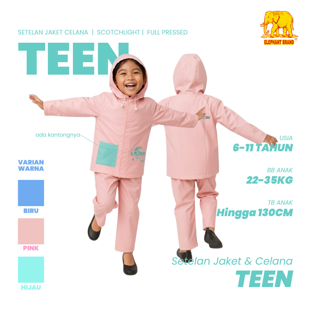 Jas Hujan Anak Remaja Usia 6-11 Tahun TEEN ELEPHANT BRAND Usia Setelan Jaket & Celana