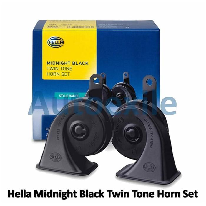 HELLA MIDNIGHT BLACK TWIN TONE HORN SET 12V KLAKSON KEONG MOTOR MOBIL - HITAM