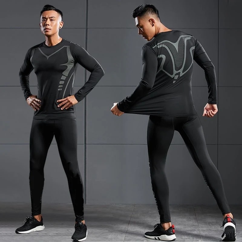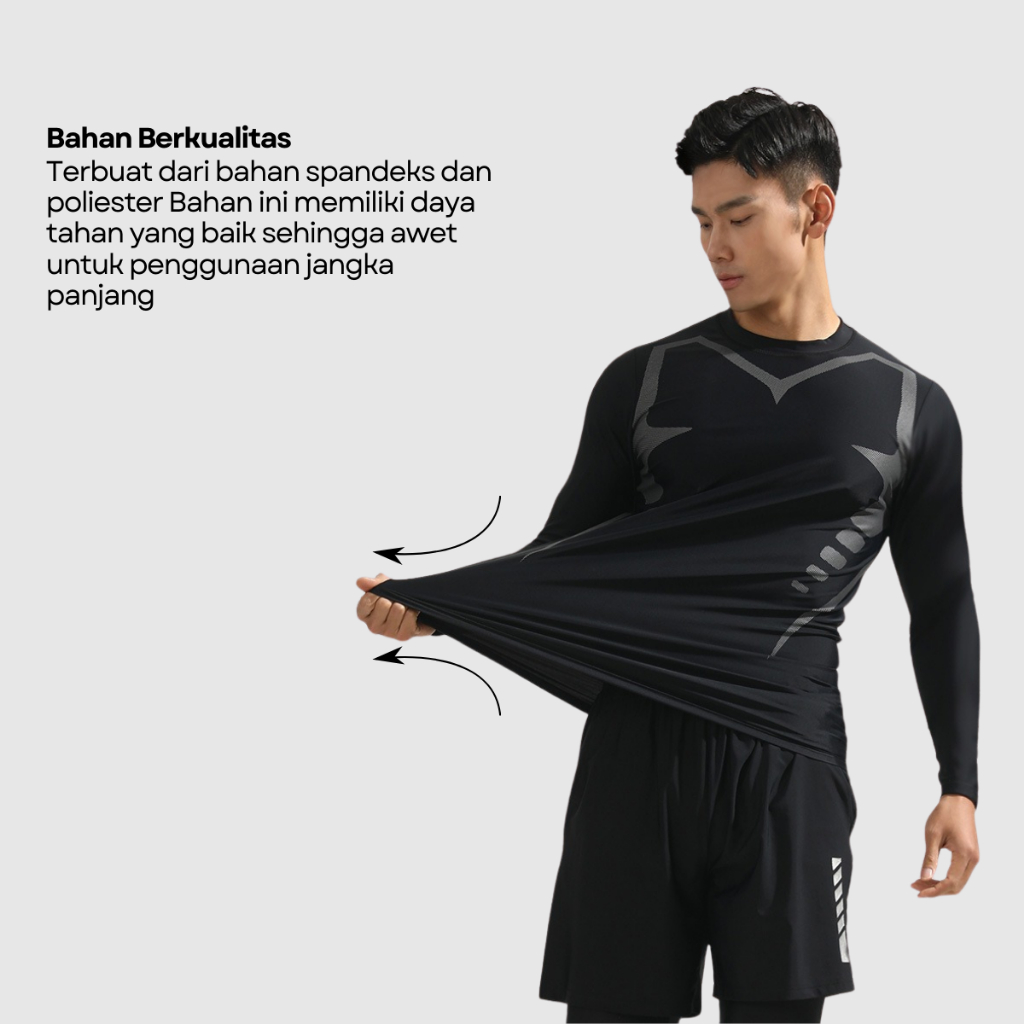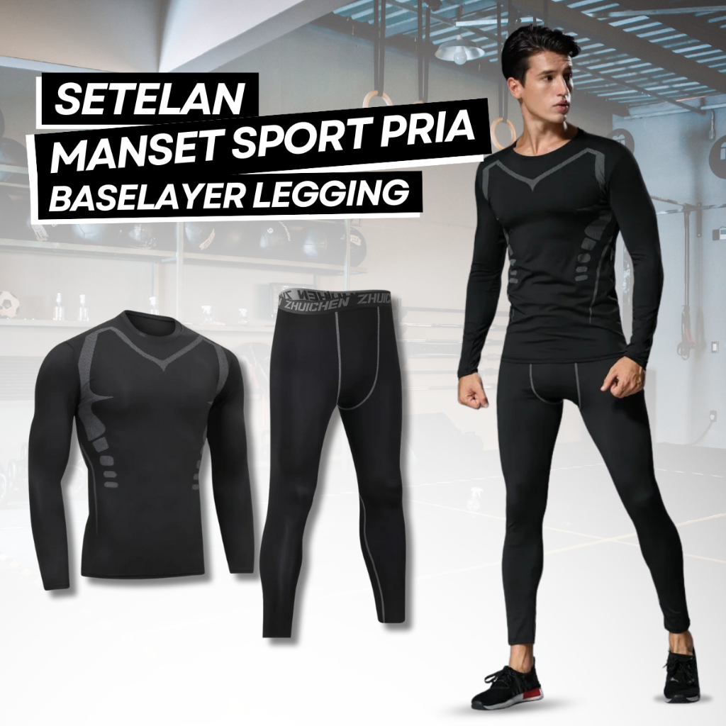 Setelan Baselayer 2 IN 1 Set pakaian Olahraga Pria Sudah Dapat Manset Baju Lengan Panjang + Legging Panjang Cocok Untuk