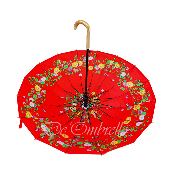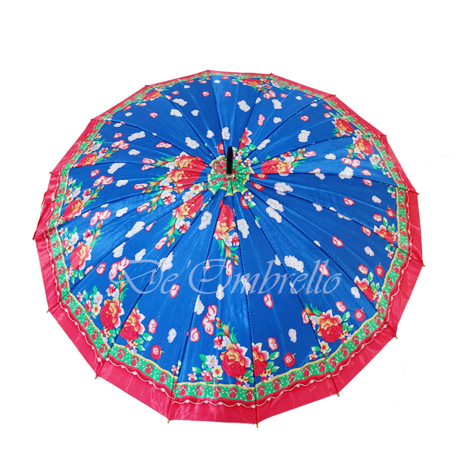 PAYUNG (062)Payung 16 Jari Bahan Saten Motif Kembang Campur Handle Premium Quality Umbrella