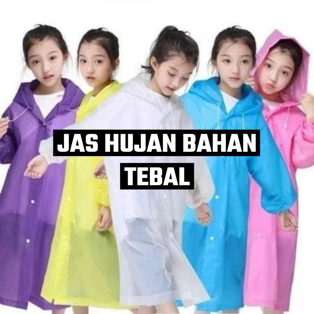 ISI 3 PCS Jas Hujan EVA Anak Tebal Jas Hujan Anak Poncho Mantel Hujan Semi Transparan