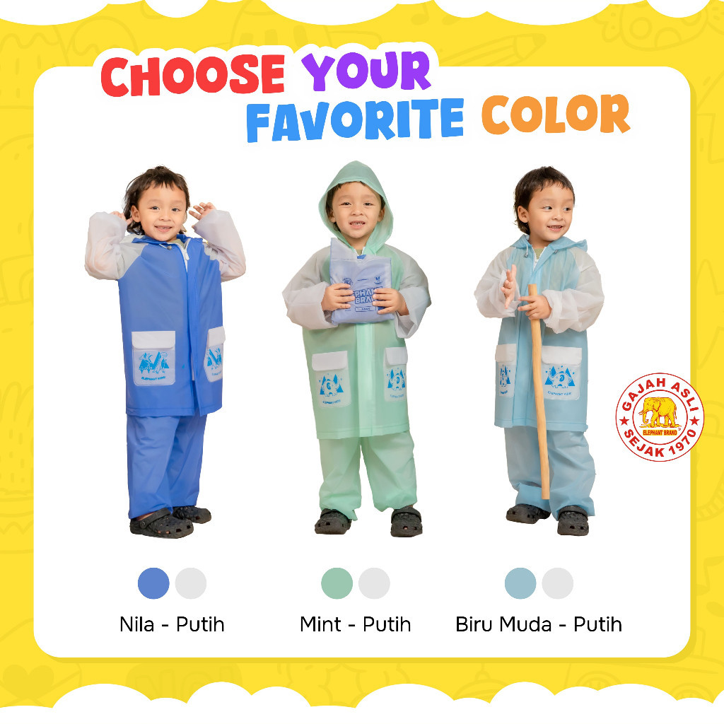 Jas Hujan Anak Setelan Elephant Kids - Raincoat TK-SD Elephant Brand