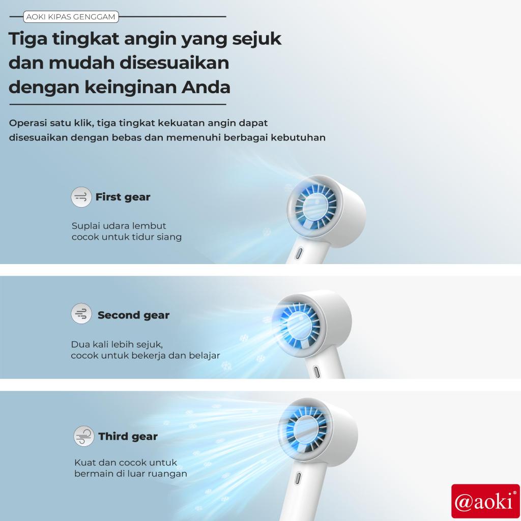 AOKI Kipas Mini Turbo – Angin Kencang, Hemat Daya, Baterai Awet – Portable, 3 Kecepatan, USB Charging, Baterai Tahan Lama