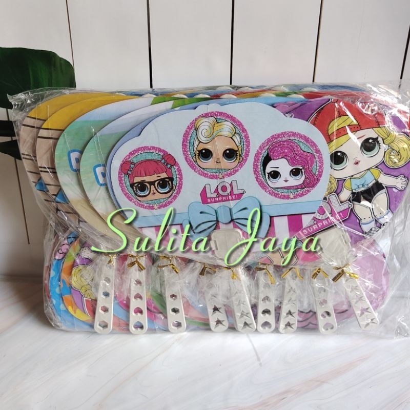 souvenir pernikahan kipas karakter kemasan plastik isi 50 pcs