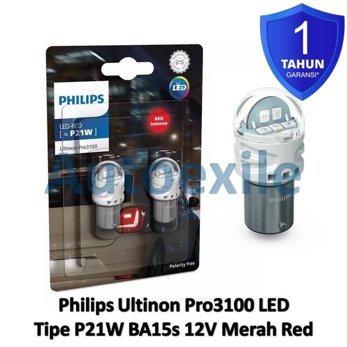 PHILIPS LED S25 P21W BA15S LAMPU MOBIL DUDUKANPUTAR 1TITIK SEJAJAR - PRO3100 MERAH