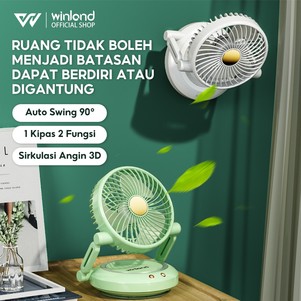 Winland Kipas Angin Lipat Kipas Angin mini portable Meja Wireless Rotasi 180° Portable Mini Fan Recharge