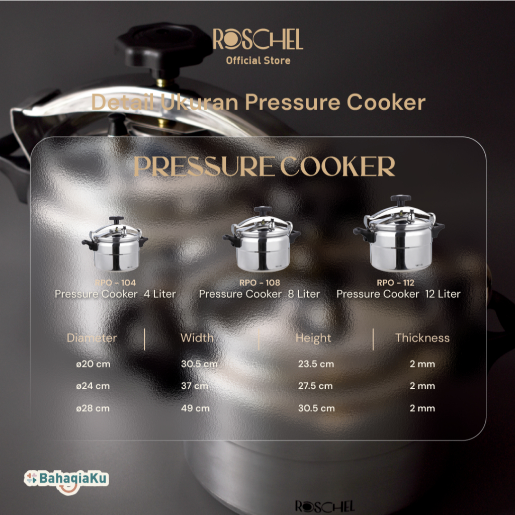𝐏𝐫𝐨𝐦𝐨 Roschel Pressure Cooker High Grade Aluminium 3003 Panci Presto 4 Liter / 8 Liter / 12 Liter Induksi RPO-104 /
