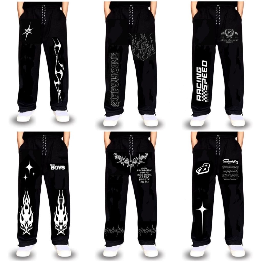 celana baggypants fleece trusted black skena unisex remaja dewasa