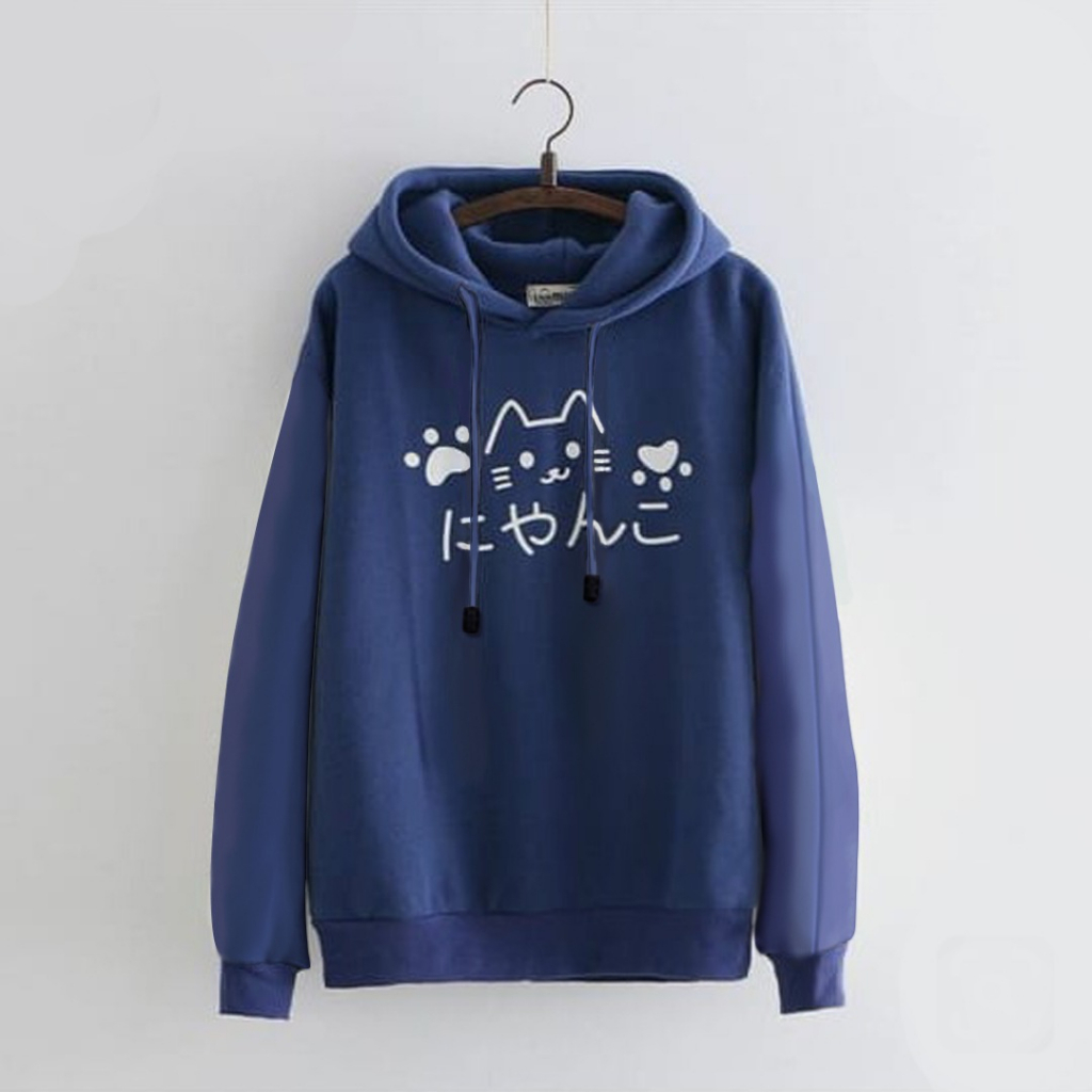 Parisdivarious Sweater Hoodie Jemper Kucing Lucu Bahan Fleece Size S - XXL (Pria & Wanita)