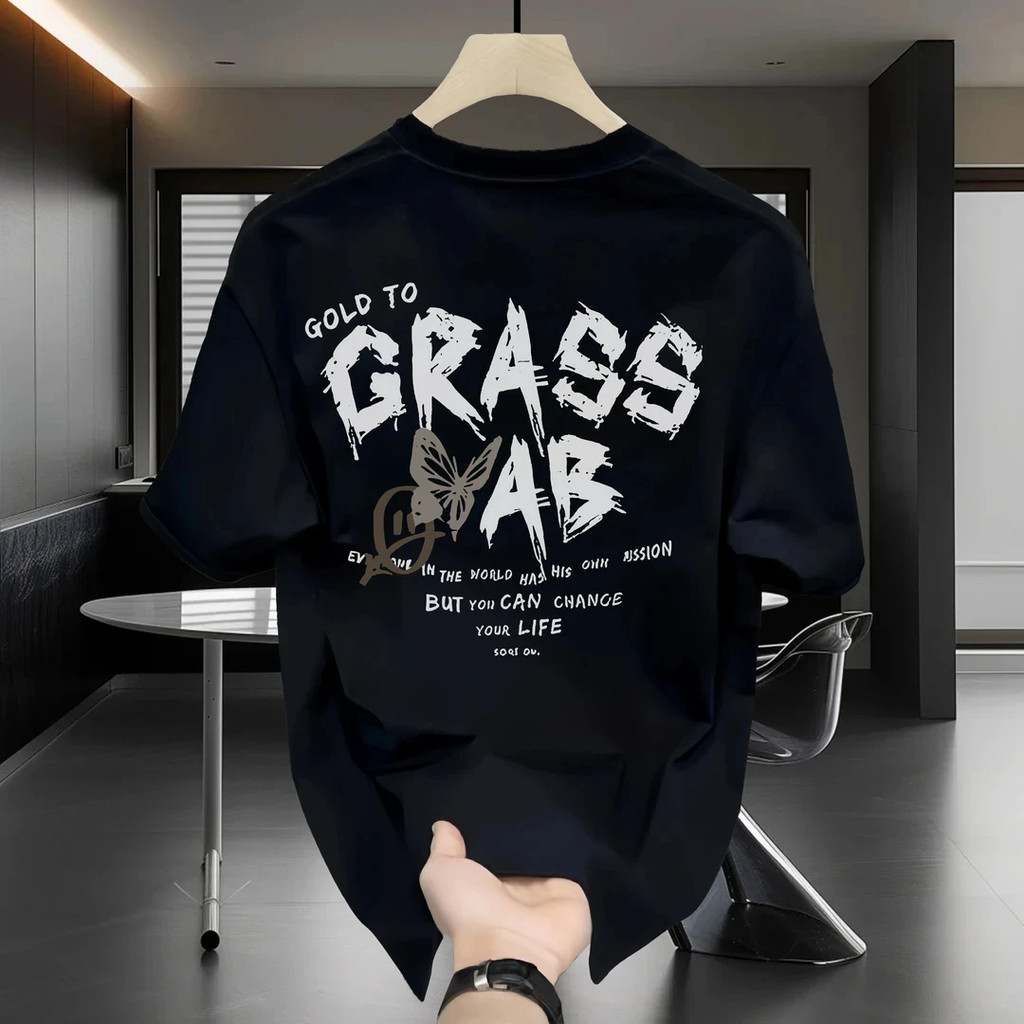 【Kaos Distro Pria】Huruf pasang amerika yang dicetak dengan lengan pendek, pria dan wanita, blus longgar Kaos katun murni