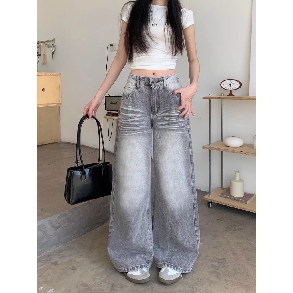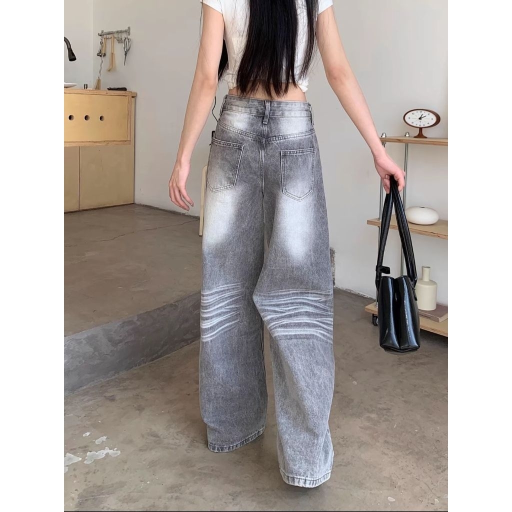 Highwaist Kulot Jeans Abu Wanita Loose Retro Skena - Celana Abu-Abu Wanita Terbaru Wisker Sekena