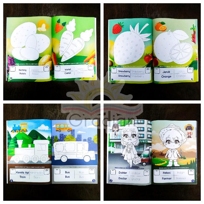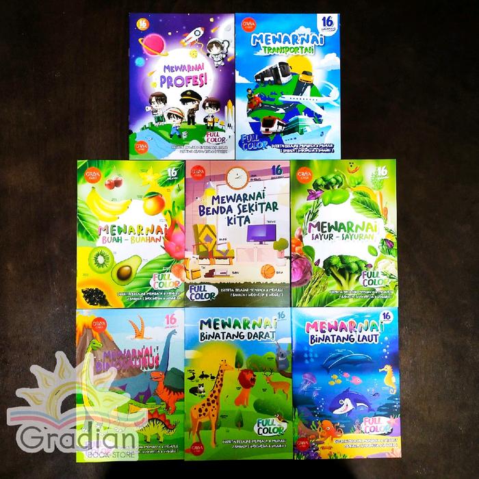 Buku Mewarnai Anak | Mewarnai Hewan Sayur Buah Transportasi Dinosaurus Profesi Benda (Full Colour) - Hewan Darat