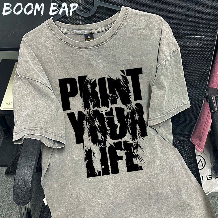 BOOMBAP American retro Style T-shirt Oversize Putar huruf Print top| Kaos Wanita Cream | Kaos pria dan wanita | Street S