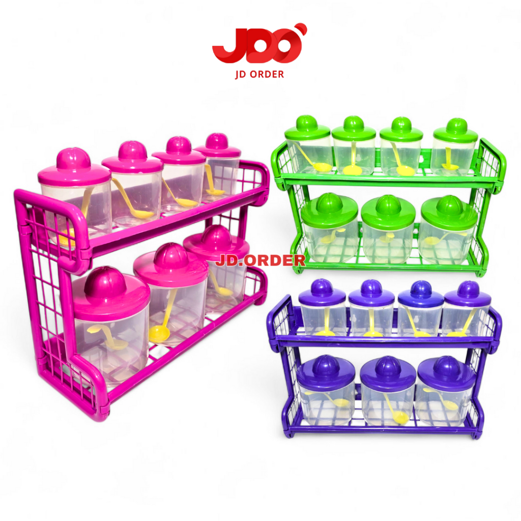 Rak Bumbu JDO Rak Bumbu Susun 2 Plastik 7In1 Hemat Tempat, Rak Bumbu Gantung Plastik 7In1 Elegan Rapi