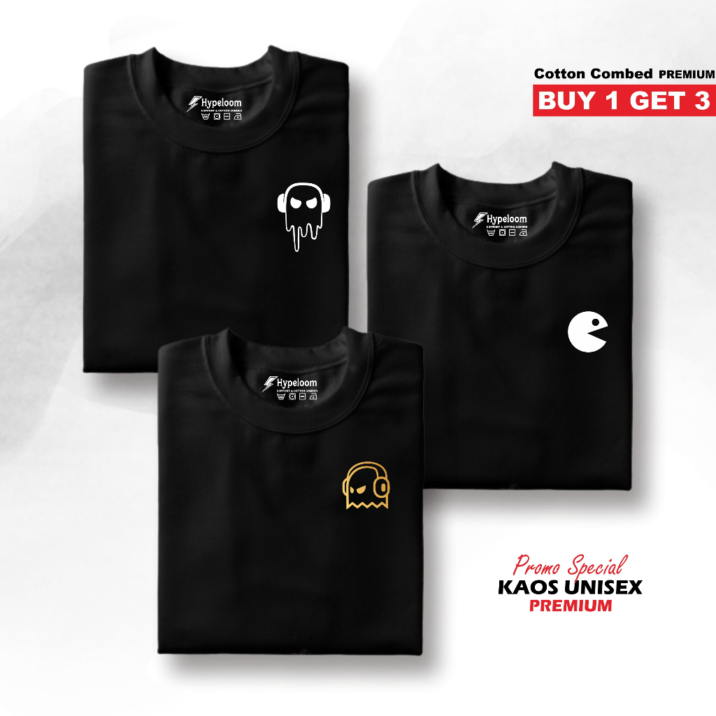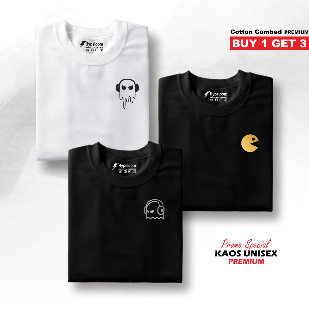 Hypeloom Buy 1 Get 3 Pcs Kaos Pria Distro Premium Cotton Combed 30s Pacman Simpel Elegant Netes