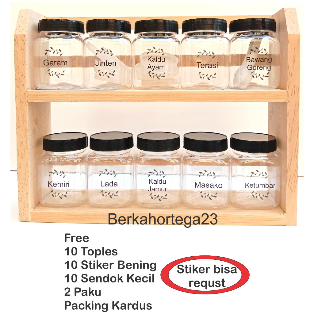 Rak Bumbu Rak Bumbu 2 Susun Free Toples, Sendok, Stiker Transparan yg bisa Request nama2 bumbunya