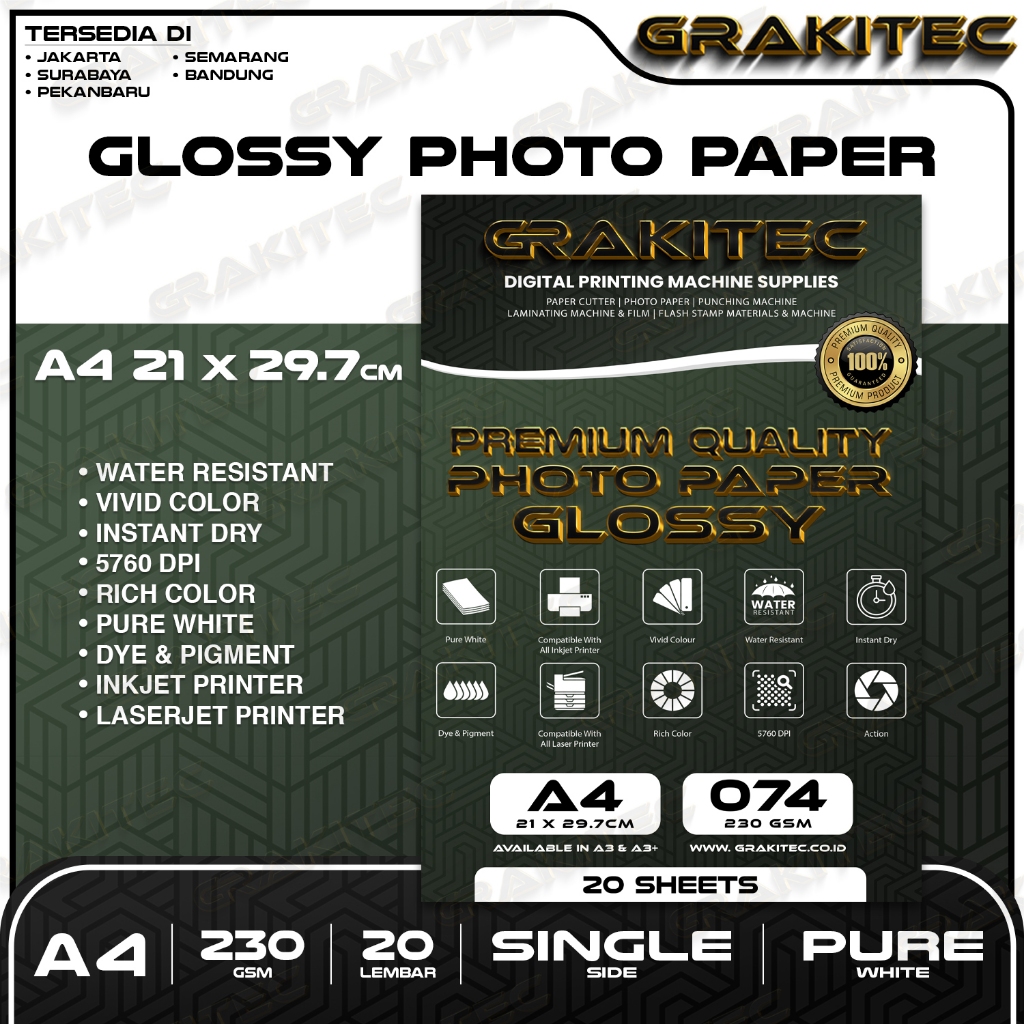 Kertas Foto Glossy A4 - GRAKITEC Premium Photo Glossy Paper A4 260, 230, 200, 180 GSM New