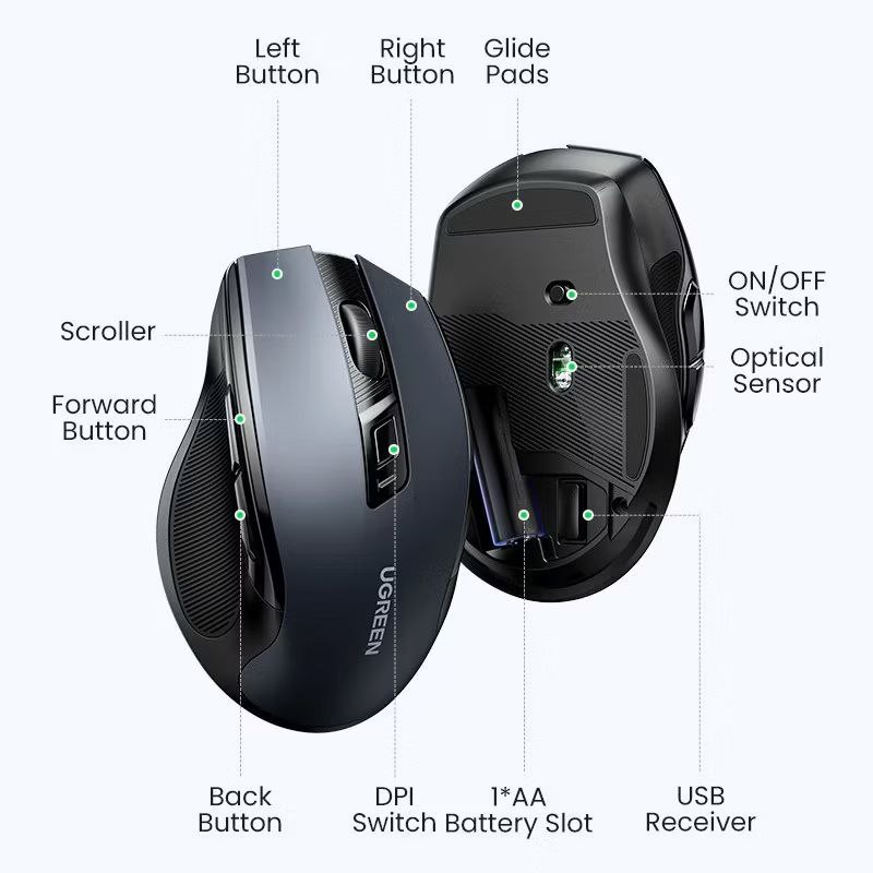 Cbd* UGREEN 90545 Ergonomic Wireless Silent Mouse 2.4G Silence Design