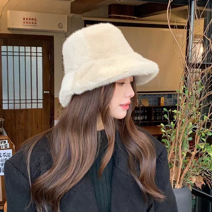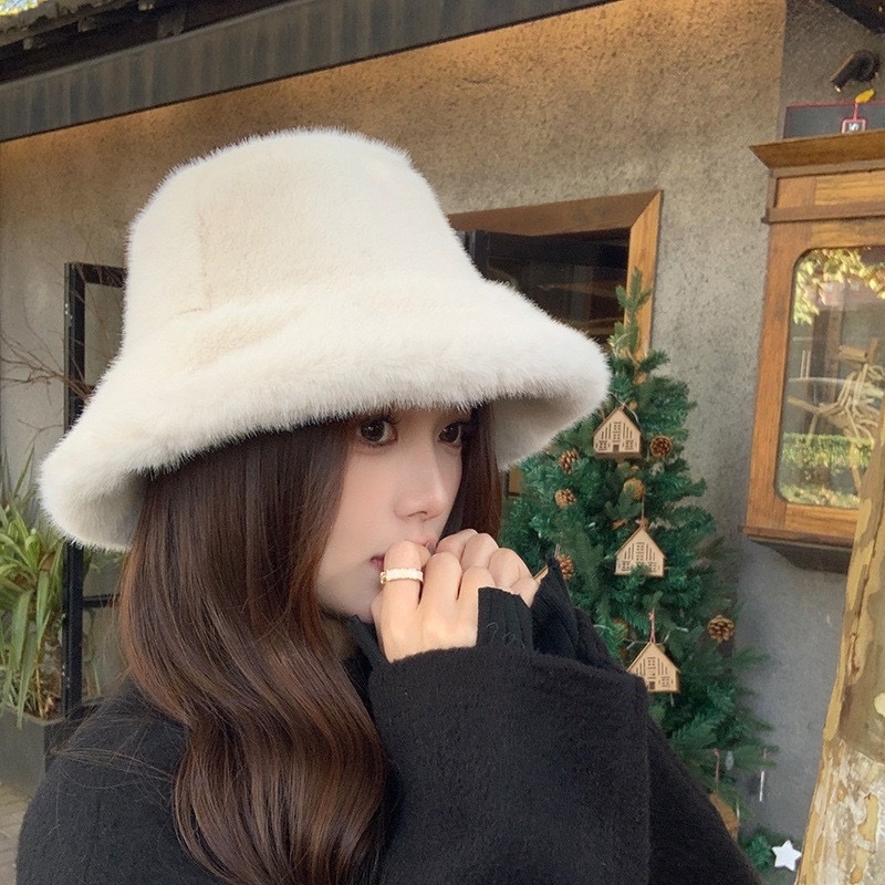 By Her Official - Topi Bucket Bulu Thermal Musim Dingin / Topi Wanita Bulu Premium Halus Tebal / Thick Fur Bucket Hat Wo