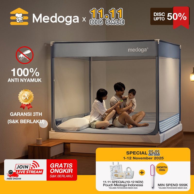 Medoga Kelambu Anti Jatuh Anti Nyamuk Tenda Bayi & Dewasa Jumbo Kotak 160x200 180x200 200x200
